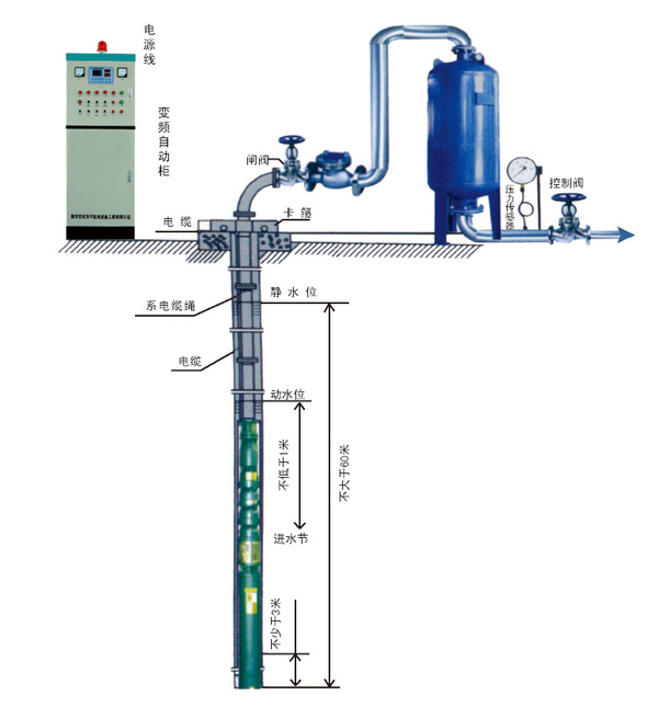 不過,正是考慮到無塔供水設(shè)備以上問題,很多廠家提出了解決辦法。在水井里面放一臺深井泵,將井水抽進水箱儲存,在接一套變頻恒壓設(shè)備。一臺深井泵不貴,就算使用幾年后壞了,客戶從新采購一臺一樣的深井泵跟換就沒有問題了。況且在深井泵更換期間,只要水池里面有水,用戶也不會出現(xiàn)停水狀況,既減少了客戶以后重新采購整套深井無塔供水設(shè)備的成本,更是減輕了廠家不停來往客戶現(xiàn)場維修的工作。