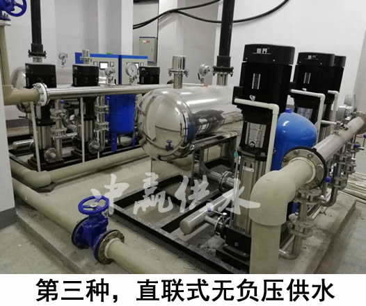 如果地下室沒有儲水池或不銹鋼水箱,而是直接通過中贏無負壓供水設(shè)備疊加市政管網(wǎng)已有壓力進行加壓的,由于它是與自來水管道是串聯(lián)的,密封性非常好,所以不會產(chǎn)生二次污染,大家可以放心使用(自來水--無負壓設(shè)備--用戶)。第三種供水方式